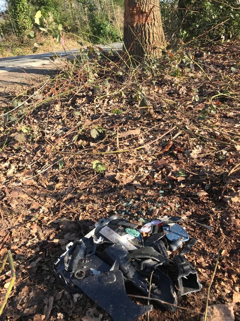 Als ik in de krant dit soort verkeersongelukken zie, dan ga ik een tijdje later langs om in het struikgewas en/of de greppel of sloot naar achtergebleven delen te zoeken.